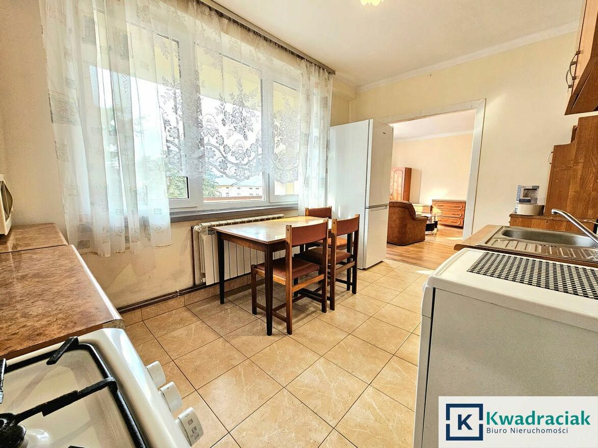 Lokal mieszkalny o powierzchni 40 m² usytuowany jest na drugim piętrze w budynku wielorodzinnym. Lokal składa się z przestronnego salonu z piecem kaflowym, który stanowi dodatkowe źródło ciepła, a także wyjściem na dużą loggię, ustawnej i dużej kuchni, łazienki z prysznicem i toaletą oraz przedpokoju. Do mieszkania przynależy piwnica o powierzchni około 9 m². Mieszkanie jest bezczynszowe, a opłaty do wspólnoty mieszkaniowej wynoszą około 100 zł miesięcznie.